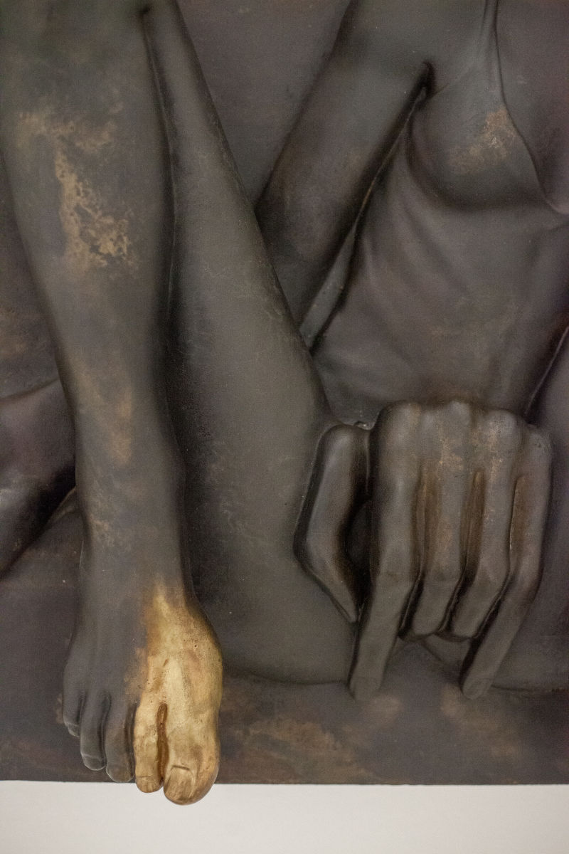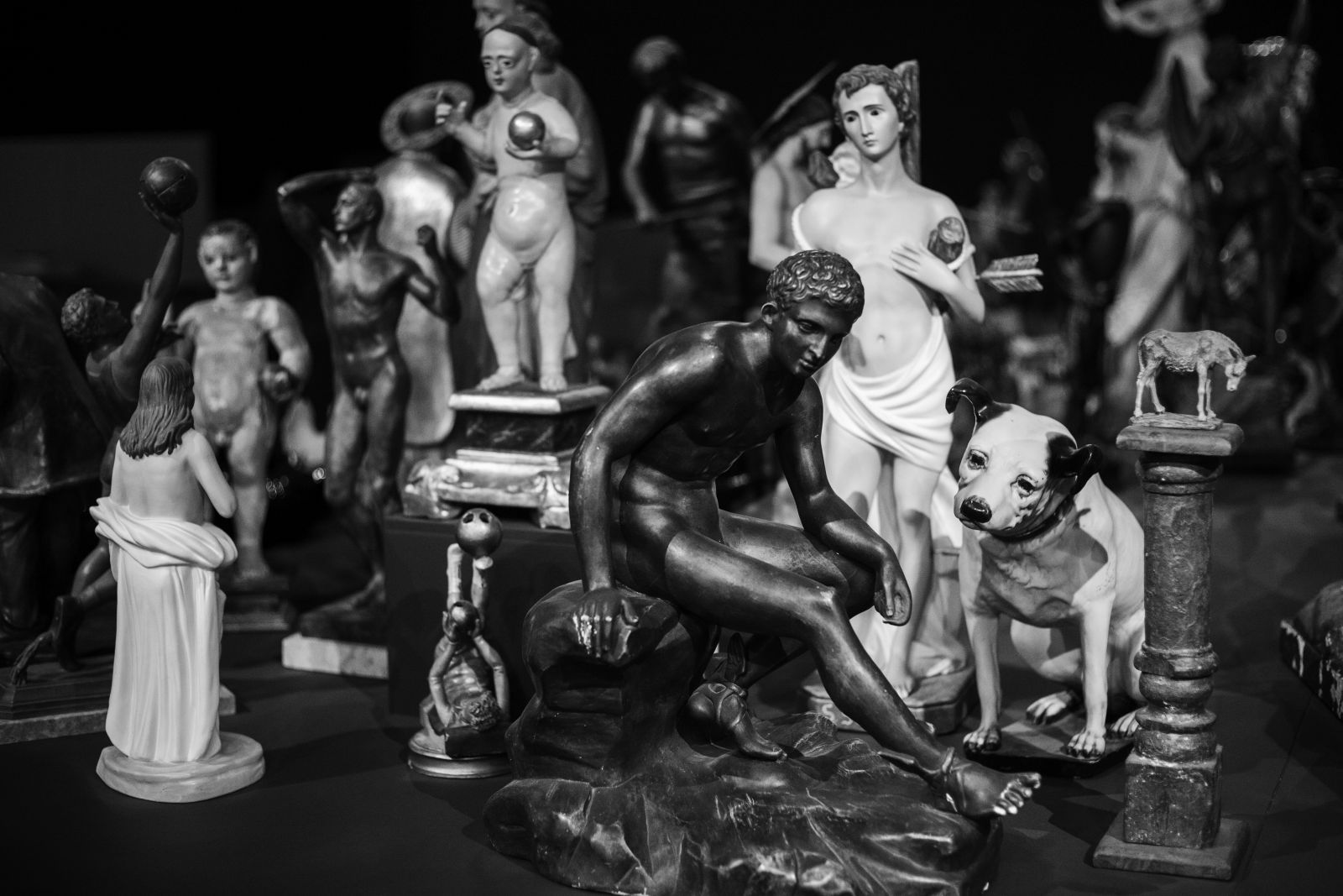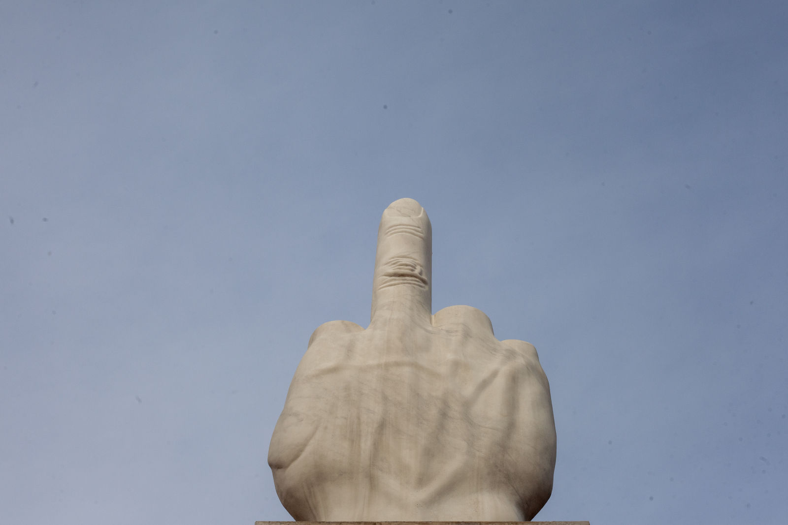 The exhibition "Whisper" presents iconic masterpieces by Maurizio Cattelan (Italy, 1960). "Between humor and social criticism, his works address themes such as history, life, and death." Bold irreverence is in the museum's DNA. On June 6, 1999, the exhibition "Circa 1968" launched the museum by "reviewing a decade of radical artistic creation coinciding with a period of remarkable social and political transformation in Portugal and the world; this groundbreaking exhibition was a true manifesto of the Museum's international ambitions and the chronological benchmark of its future collection and artistic program." Il Dito [The Finger] represents "a hand in classical Roman style, with all fingers cut off except the middle one—a provocative gesture." The piece adds to the playfulness of a studio set with its facade revealing the illusion of spectacle.