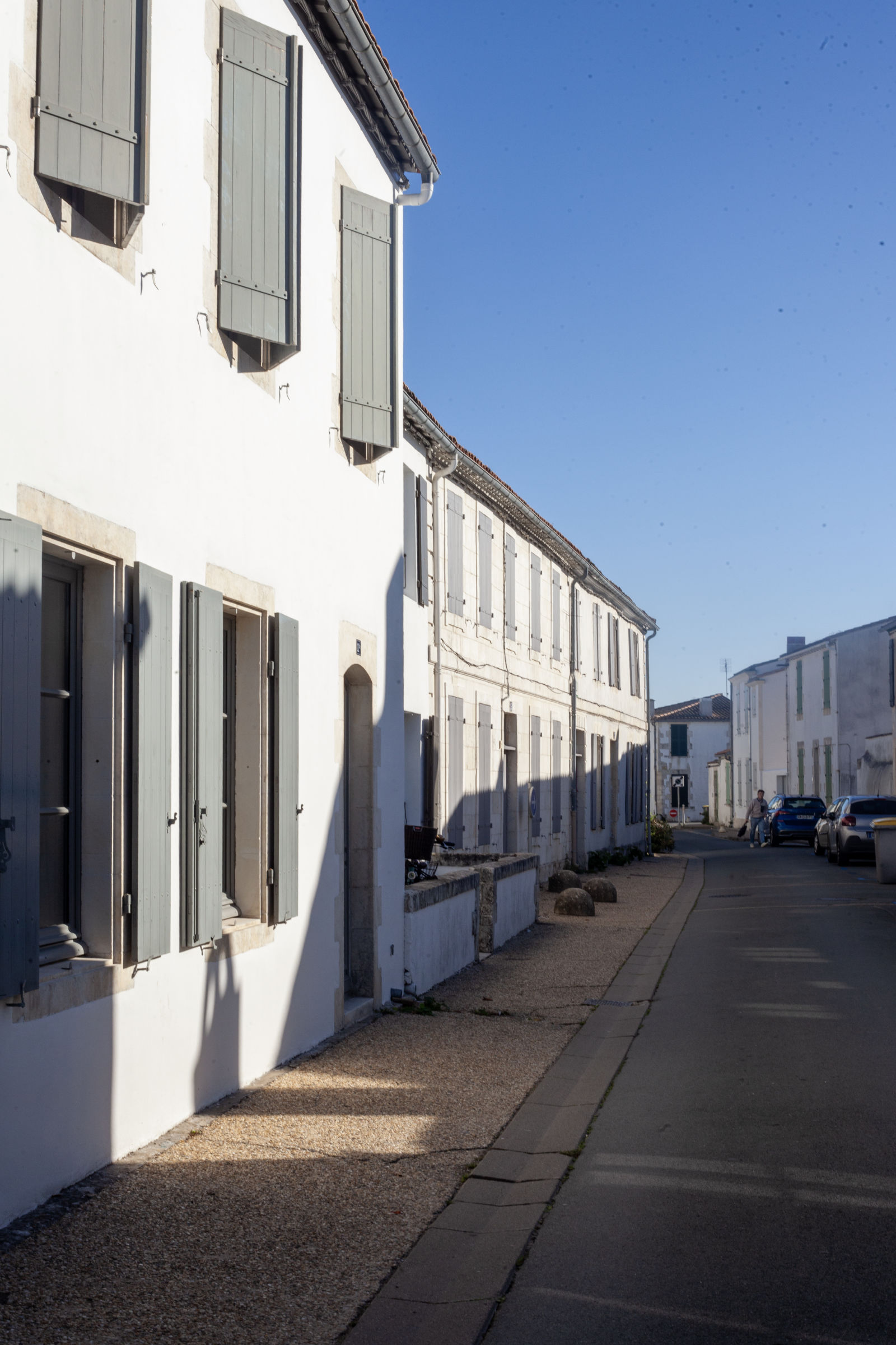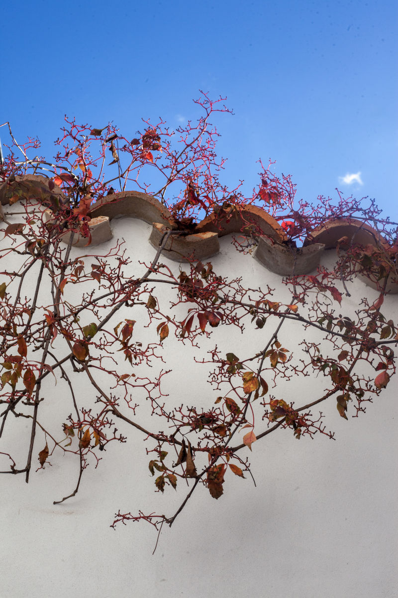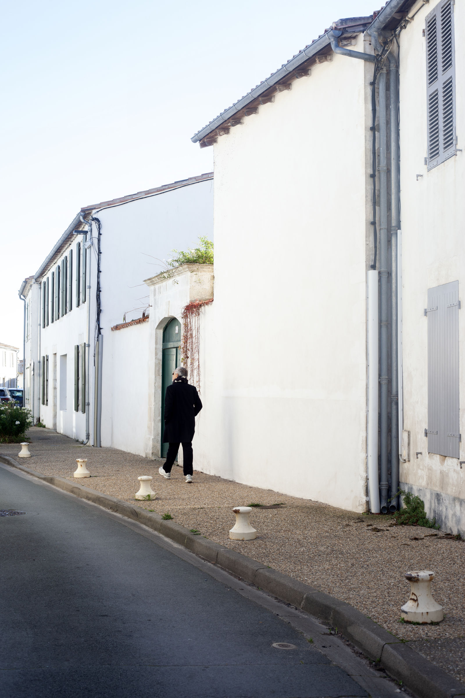 Meanwhile, nature is the naughty one, stretching over walls without asking permission. Here, a snake-like shrub plunges over a wall into private property; there, climbing plants wrap around cables and pipes. In the heart of winter, the villages are silent, stripped of people, apart from a few permanent residents walking their dogs through ghostlike streets, sealed shutters and carefree. It’s hard to imagine what this coherent architecture and its pristine white houses look like when invaded in the heat of summer.