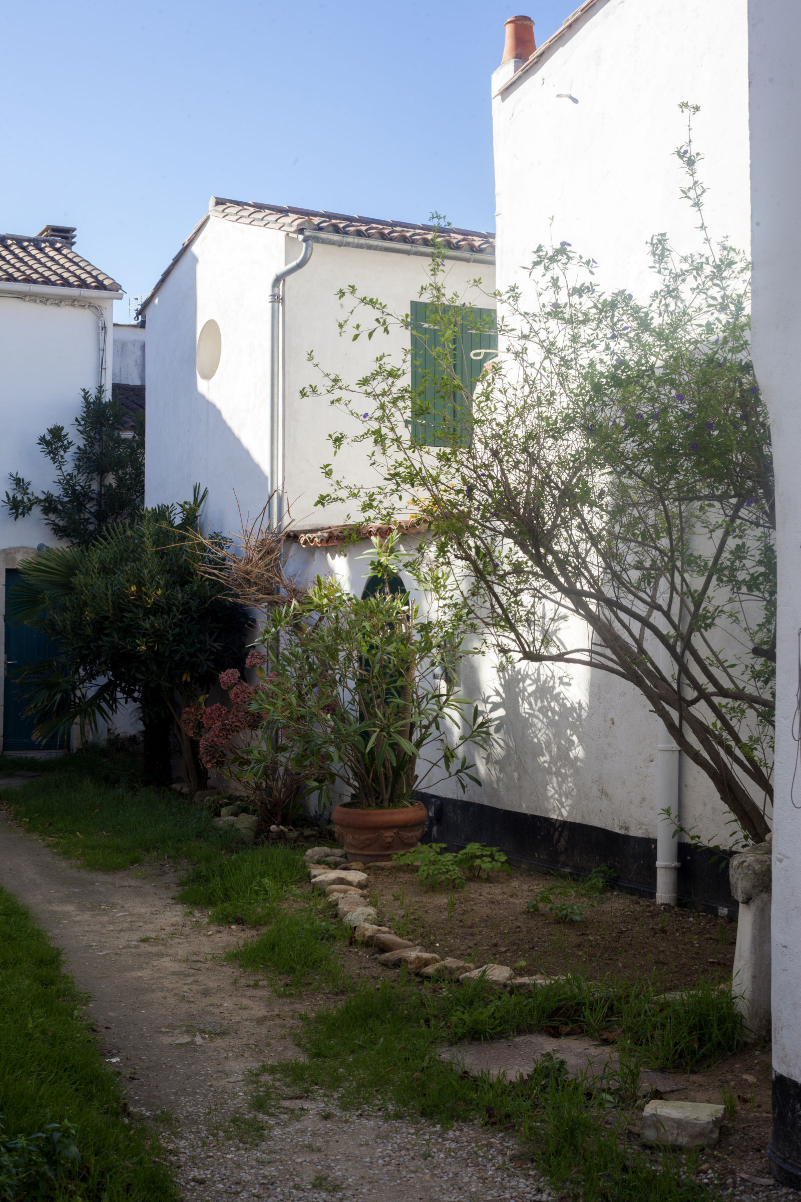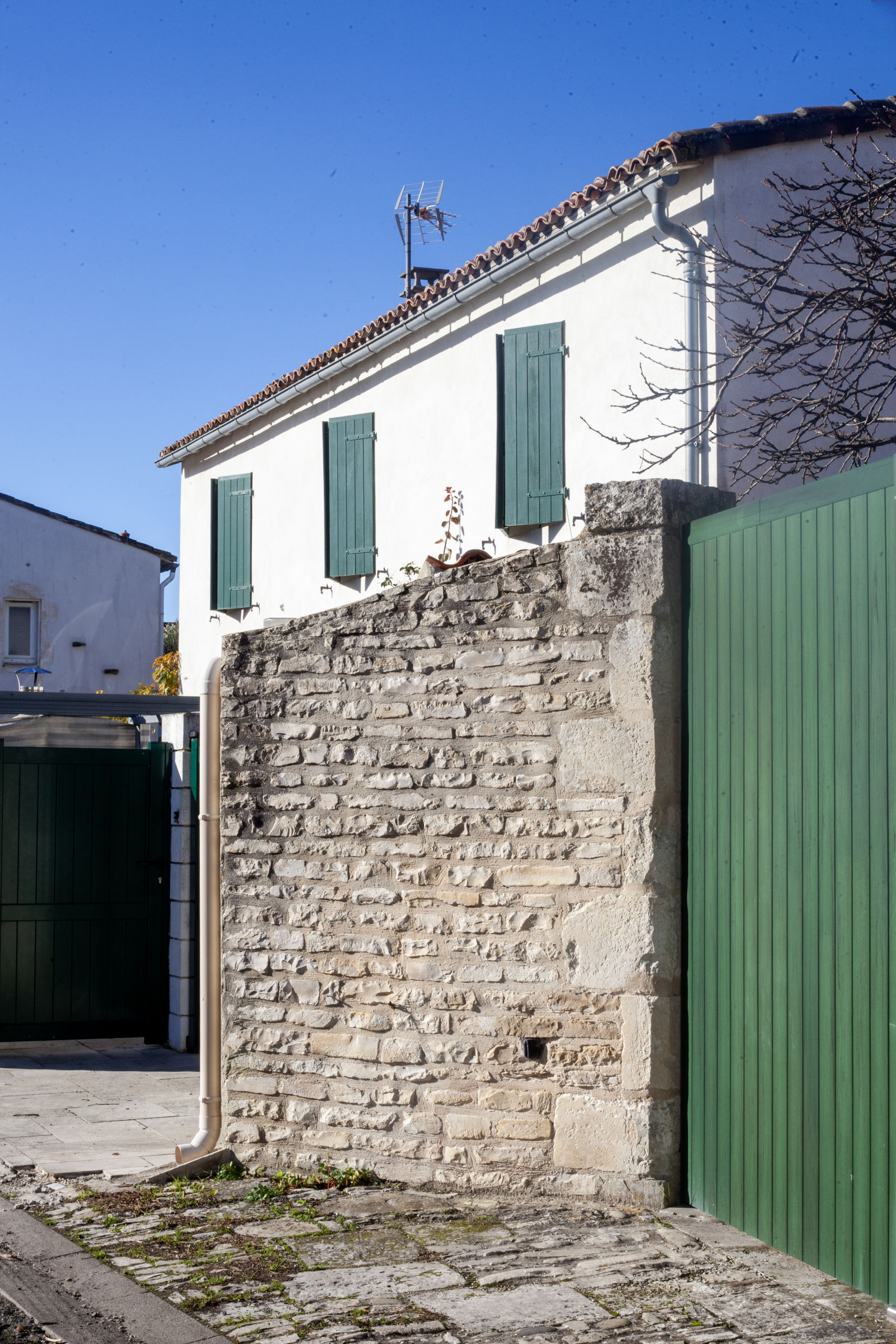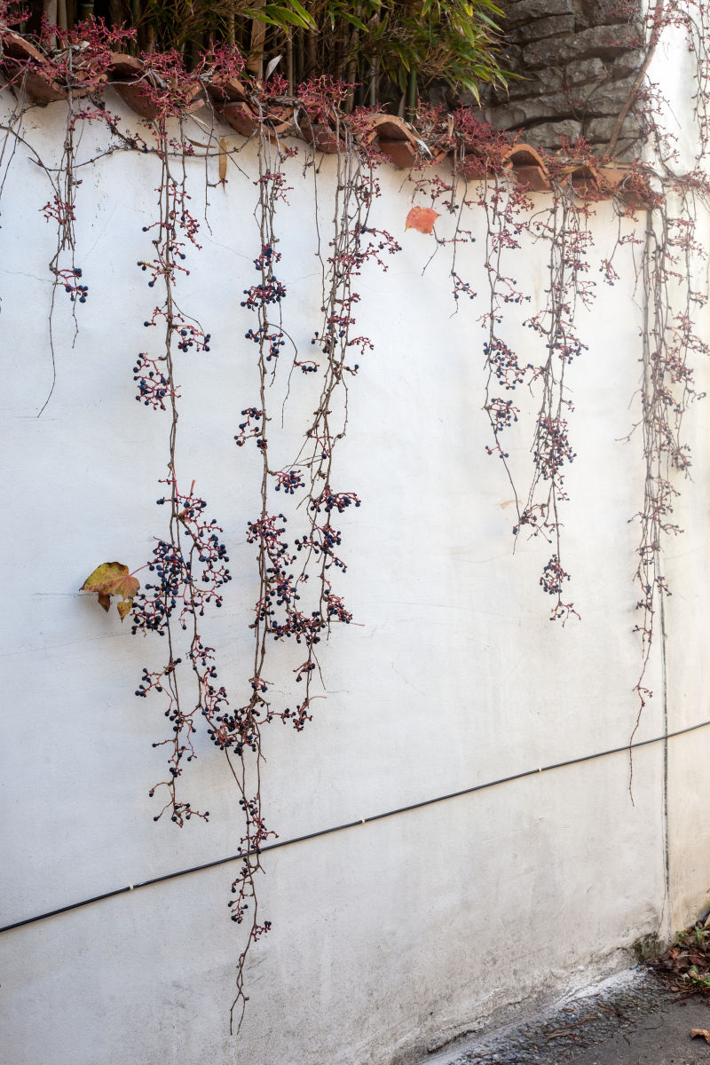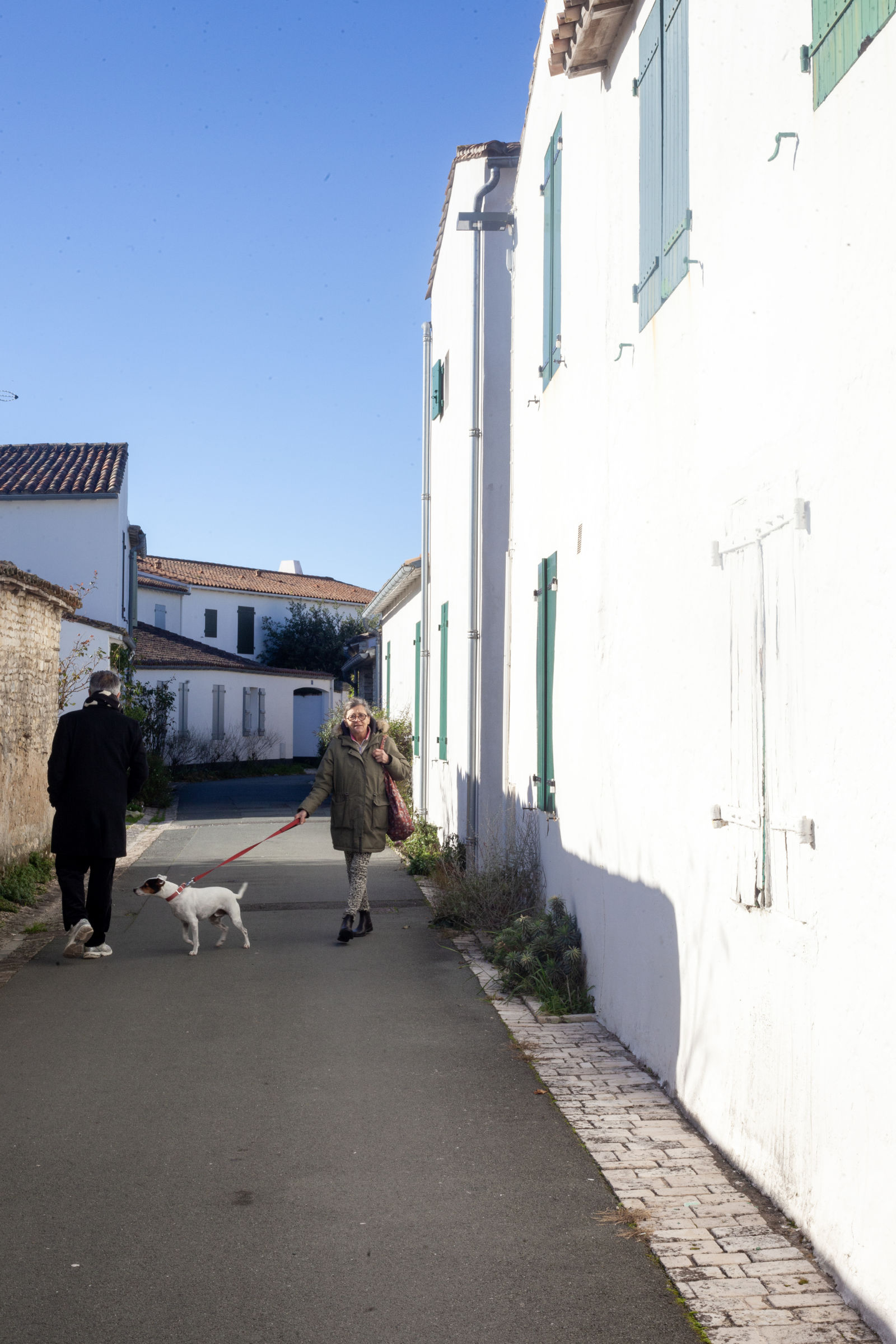 Meanwhile, nature is the naughty one, stretching over walls without asking permission. Here, a snake-like shrub plunges over a wall into private property; there, climbing plants wrap around cables and pipes. In the heart of winter, the villages are silent, stripped of people, apart from a few permanent residents walking their dogs through ghostlike streets, sealed shutters and carefree. It’s hard to imagine what this coherent architecture and its pristine white houses look like when invaded in the heat of summer.