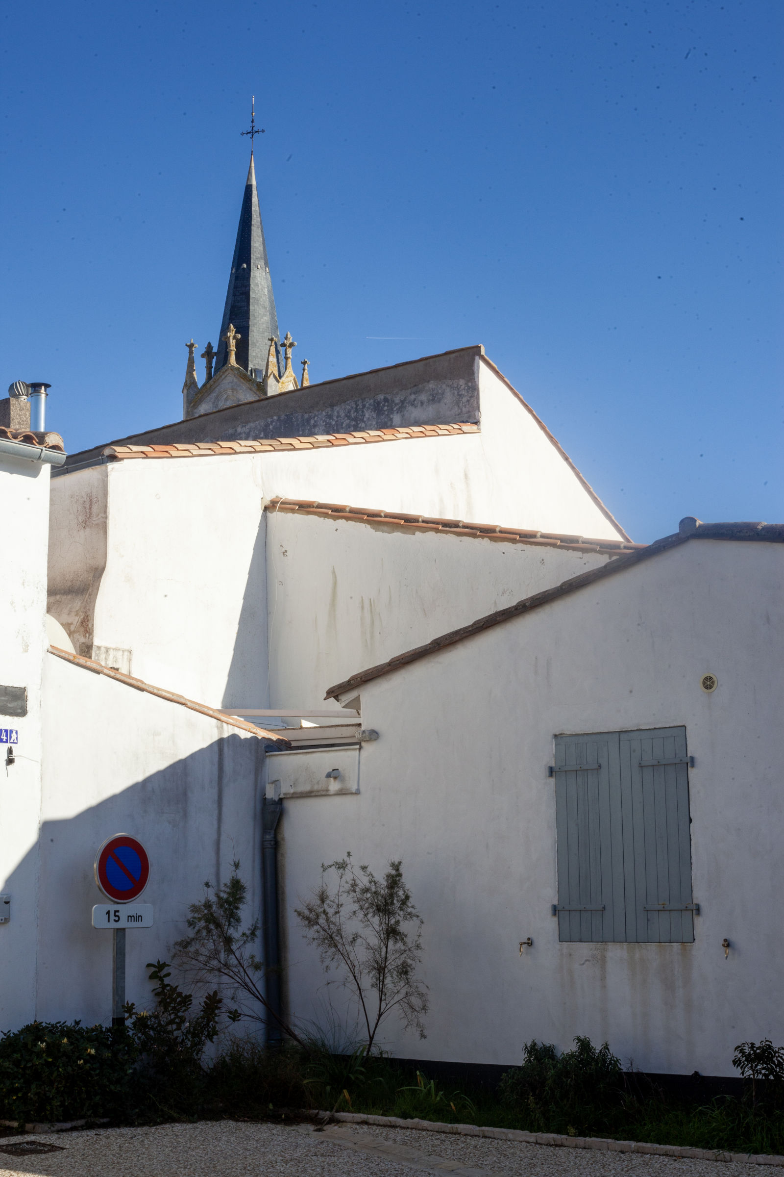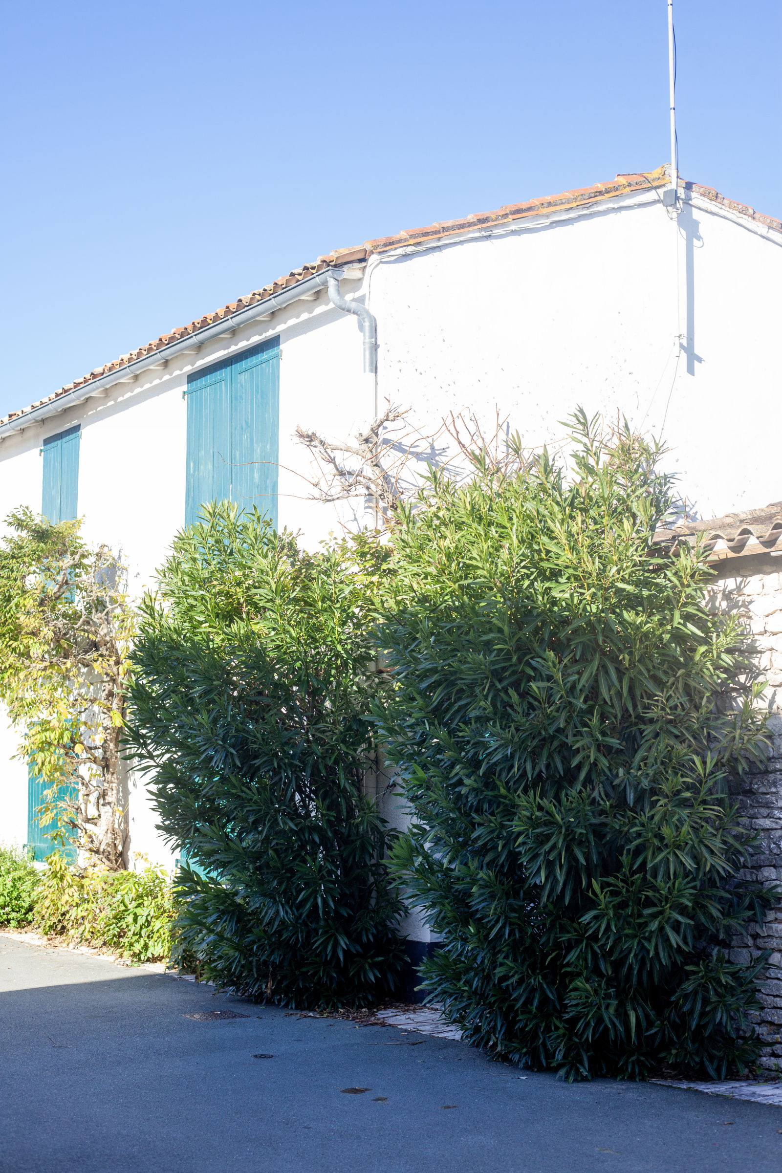 Meanwhile, nature is the naughty one, stretching over walls without asking permission. Here, a snake-like shrub plunges over a wall into private property; there, climbing plants wrap around cables and pipes. In the heart of winter, the villages are silent, stripped of people, apart from a few permanent residents walking their dogs through ghostlike streets, sealed shutters and carefree. It’s hard to imagine what this coherent architecture and its pristine white houses look like when invaded in the heat of summer.
