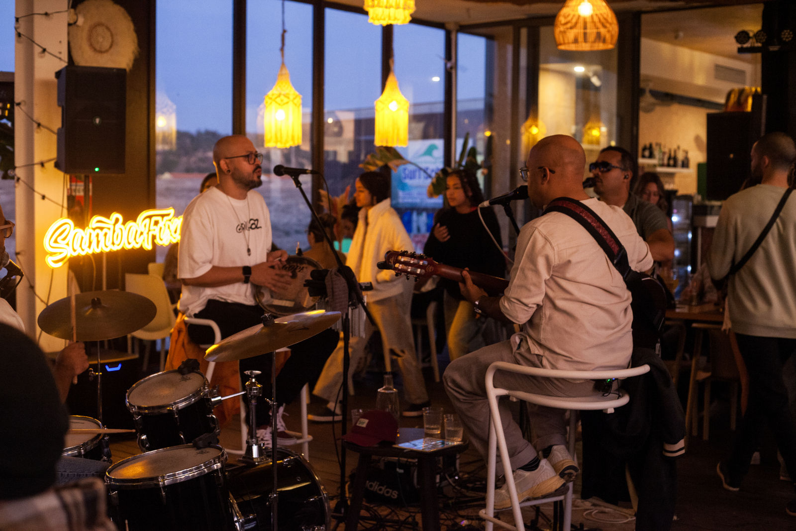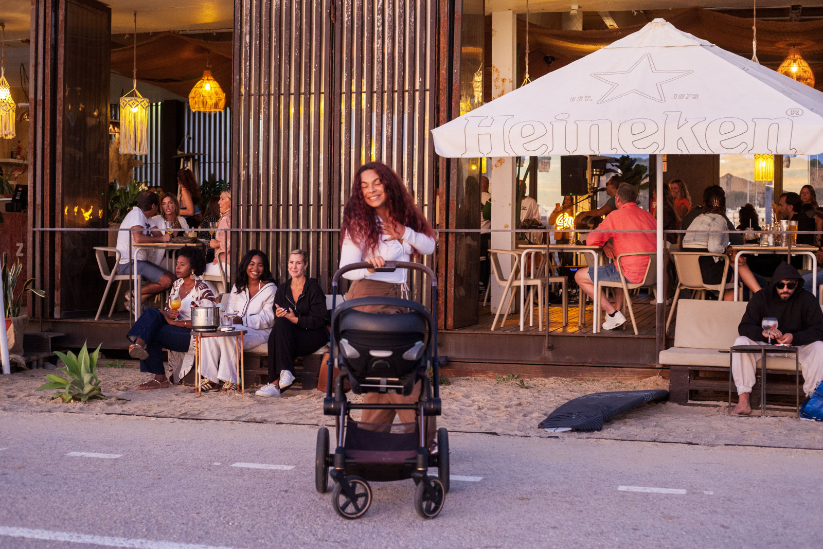 And when the waves have been experienced, it’s live music in a burger joint, from 4 p.m. to the last rays of golden hour. There is a chilled atmosphere only sun and beach life seem to craft. By dusk, when the surfboards lean like resting soldiers, and the drums take over, a new mother dances to the beat, carefree, contagious in smile and sheer joy.