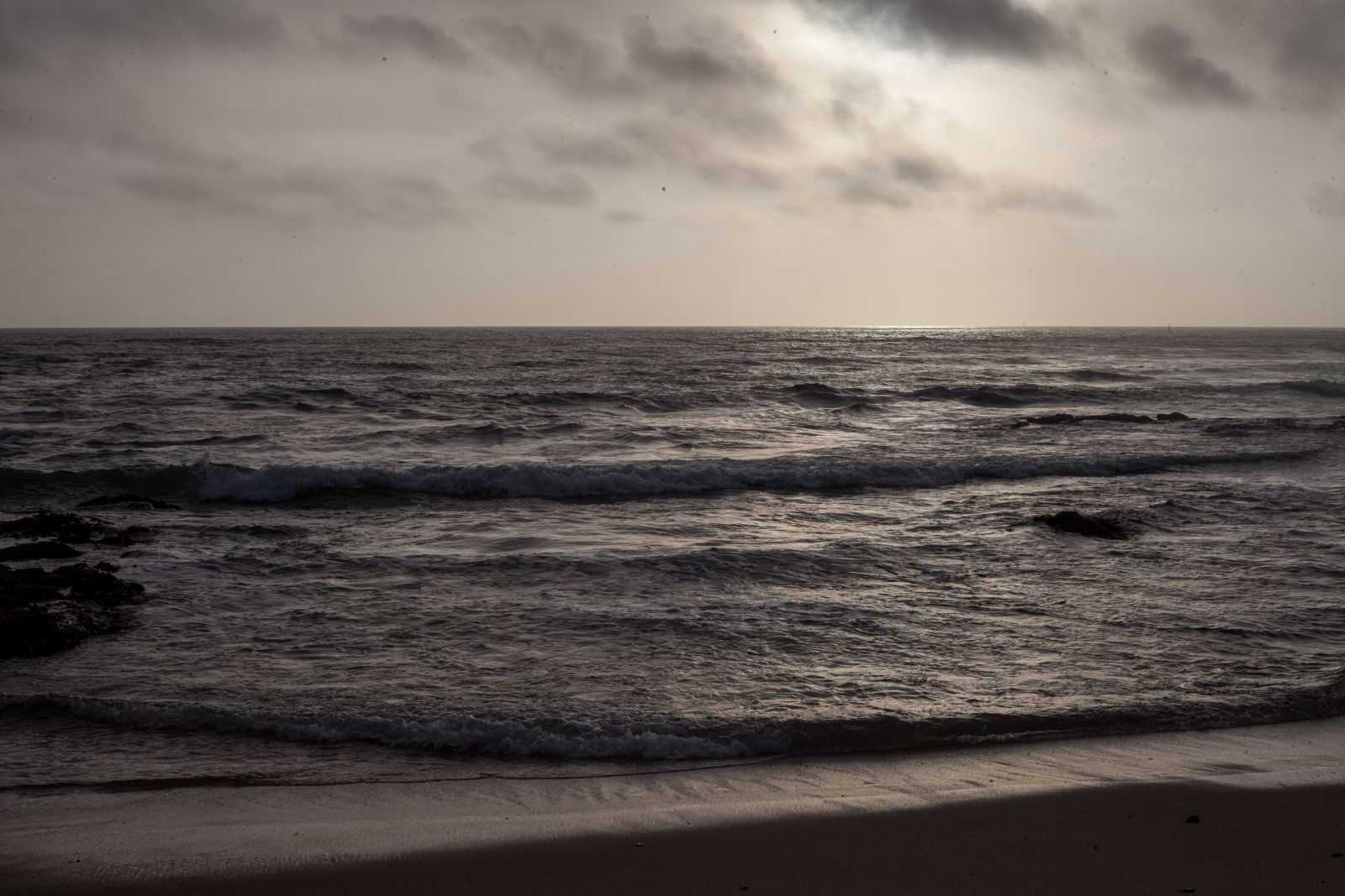 The ocean and its instrumental currents influence both the coastal weather and global climate. Human beings fish its innards, surf its waves, and at times burn on its shores. Humans keep interacting with the ocean without ever winning a battle. The ocean, majestic and telluric in its metronomic tumult and unpredictable moods, speaks of an untameable power dynamic. Although its strengths of waves and surrounding winds are dissected on apps such as #surfline and #windguru, there is something compelling in not knowing what the ocean is up to that certain day or hour. Running back and forth its edges, taking pictures became a conversation. When the ocean folds in its tides, shells and seaweed are spit out on the wet sand. The sun from silver becomes gold. A few crabs make it to the edge, rolling in and out the foam. The rocks that obstruct the ocean’s flow, force it into divisions creating randomly overlapping shapes. The soundscape is overwriting spotify. There isn't ever silence near the ocean, nor stillness. Movement is the heartbeat by default.